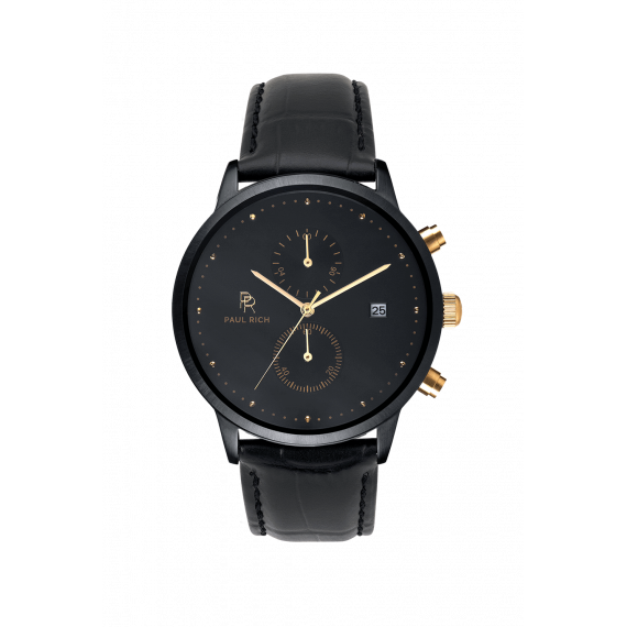 Upgrade your wrist game with the Paul Rich Watch Cosmic Black Leather, designed specifically for the modern man. This striking timepiece features a bold black dial set in a durable stainless steel case, paired with a genuine leather strap that combines comfort and style.