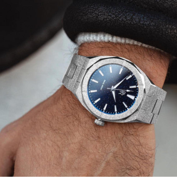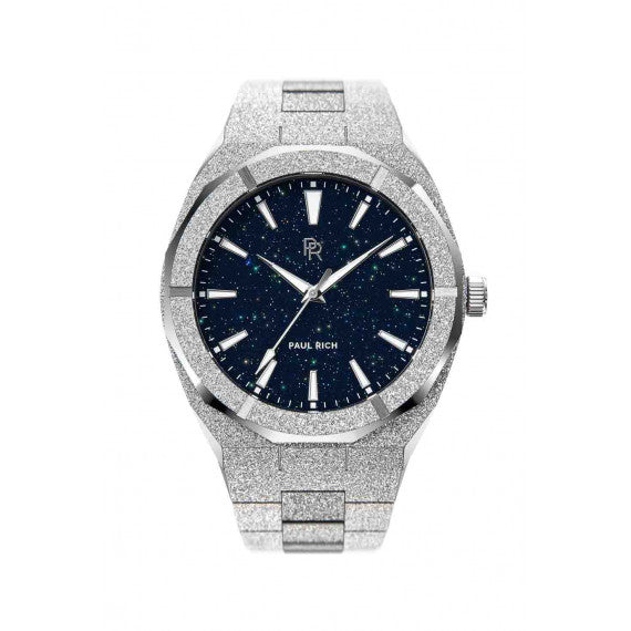 The Paul Rich Watch Frosted Star Dust - Silver features a blue aventurine dial wrapped in stainless steel with a frosted finish that shines like diamond dust. This men's watch is timeless—bold & unforgettable.