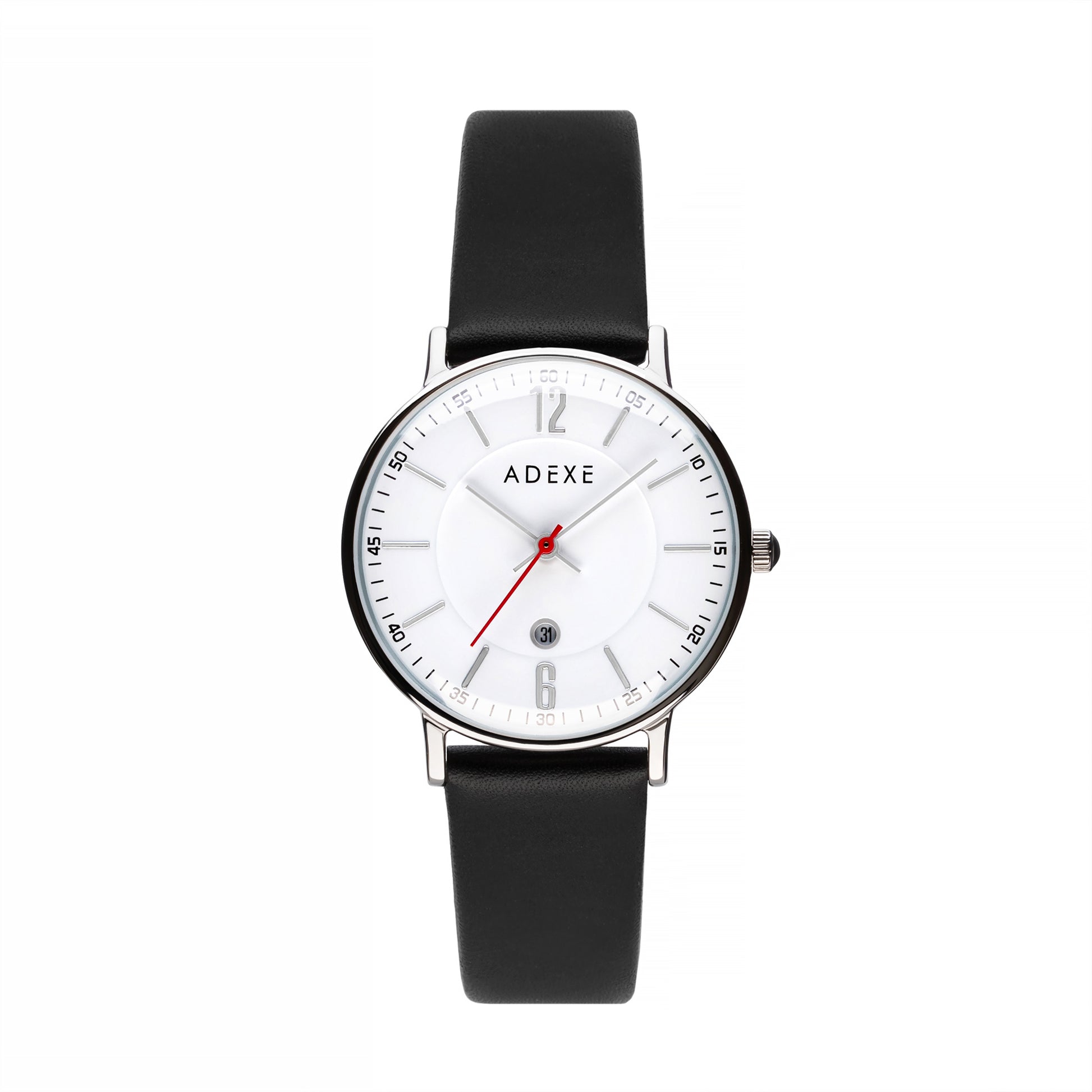 The ADEXE Watch MAC Petite Black exudes modern elegance with its sleek stainless steel case and luxurious genuine leather strap. This 33mm timepiece combines refined style with precise quartz movement, making it the ultimate accessory for any occasion.