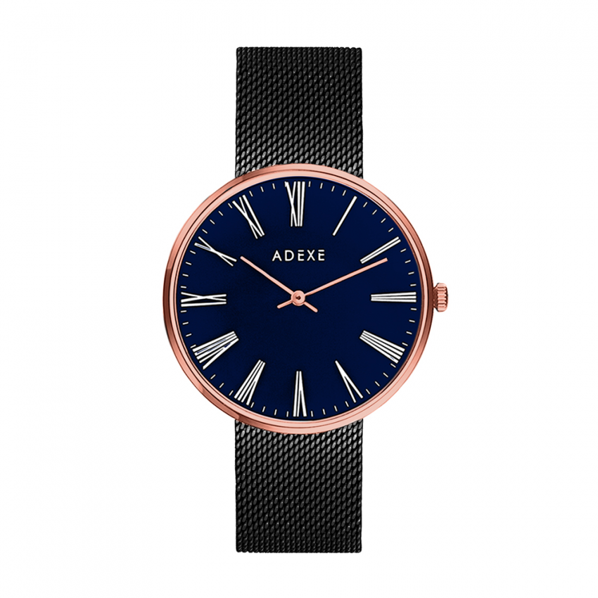 The ADEXE Watch Sistine Grande Rose Gold & Navy showcases a stunning combination of rose gold and deep navy. The elegant rose gold case accentuates the rich navy dial, creating a sophisticated contrast. This timepiece is perfect for adding a touch of elegance to both casual and formal attire.