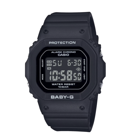 The CASIO Baby-G Digital BGD-565U-1 in Black is a sleek and versatile timepiece that combines style and functionality. Featuring a classic black design, this watch is perfect for everyday wear and can easily complement any outfit.