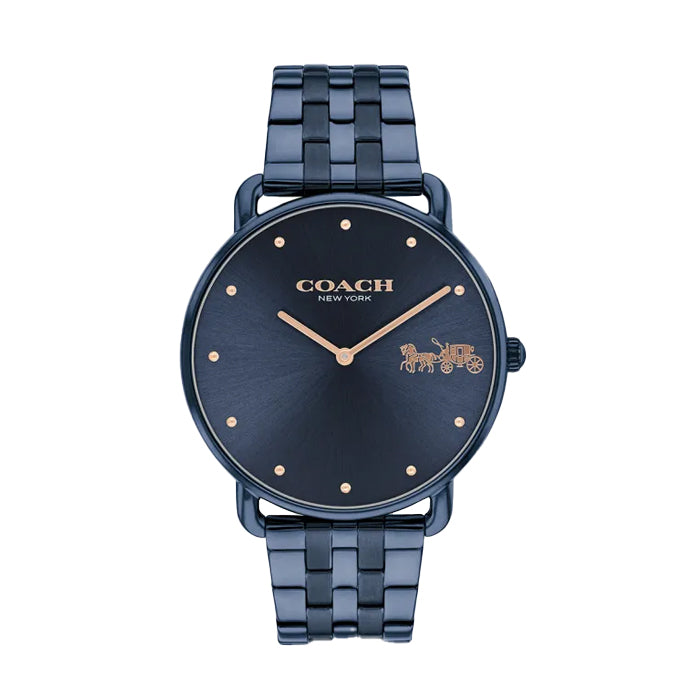 The Coach Elliot 14504297 watch offers a stylishly modern take on traditional watch aesthetics. With its striking blue color, a sophisticated dial, and a durable stainless steel case, this timepiece embodies a blend of contemporary flair and classic charm. It's the perfect accessory for those who appreciate a playful yet refined look in their fashion choices.