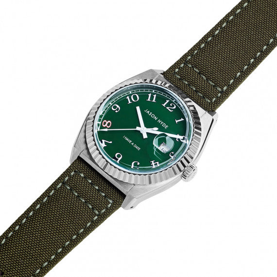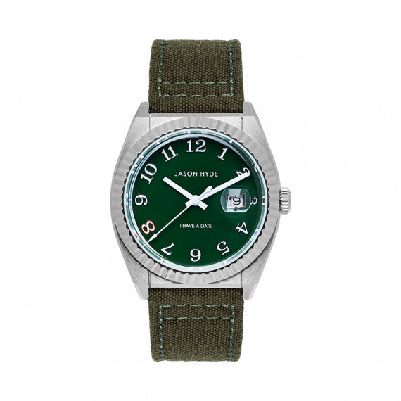 The Jason Hyde I Have A Date Green/Green is a nature-inspired timepiece, featuring a green dial, green strap, and stainless steel case. Designed with a quartz movement and date function, this watch is both eco-friendly and stylish.