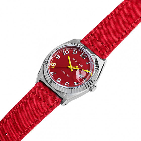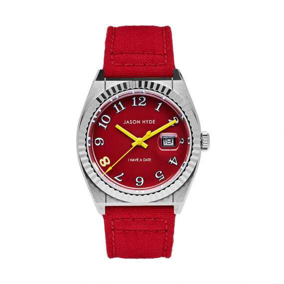 The Jason Hyde I Have A Date Red/Red is a striking monochromatic timepiece, featuring a red dial, red strap, and stainless steel case. With its quartz movement and date function, this watch is perfect for those who love bold and vibrant styles.