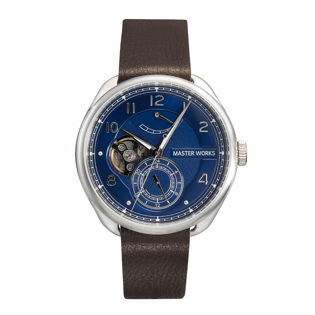 The Master Works Quattro 001 Navy & Blue offers a sleek navy blue dial and matching leather strap, housed in a stainless steel case. Featuring Seiko Epson YN77A movement and 50M water resistance, this watch is stylish and functional.