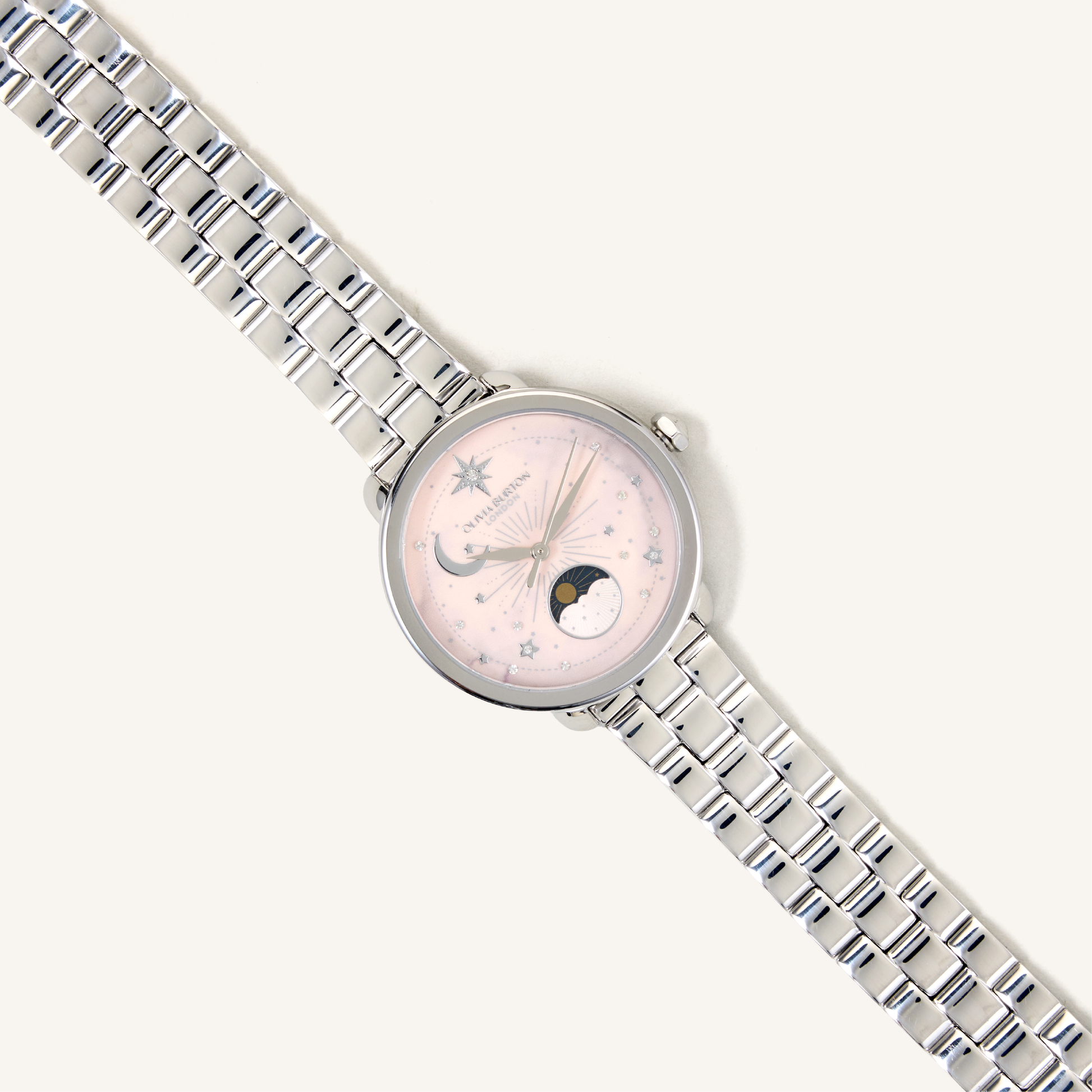Olivia Burton Watch Celestial 34mm Moon Phase Pink & Silver Bracelet 24000297