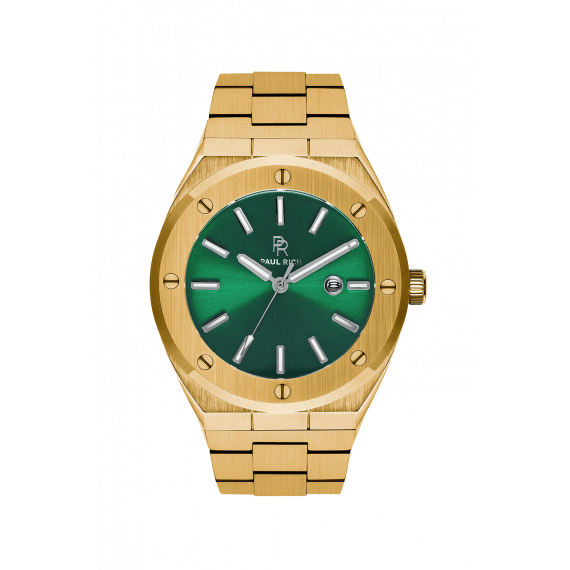 Introducing the Paul Rich Watch Signature - King's Jade, a stunning fusion of style and durability. This timepiece features a striking silver sunray dial, accentuated by a 316L stainless steel case and strap, making it perfect for both casual and formal occasions.