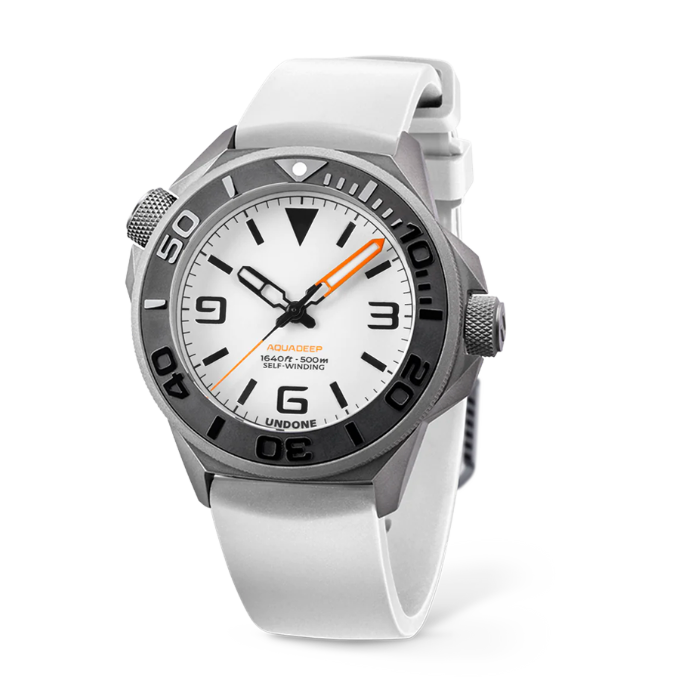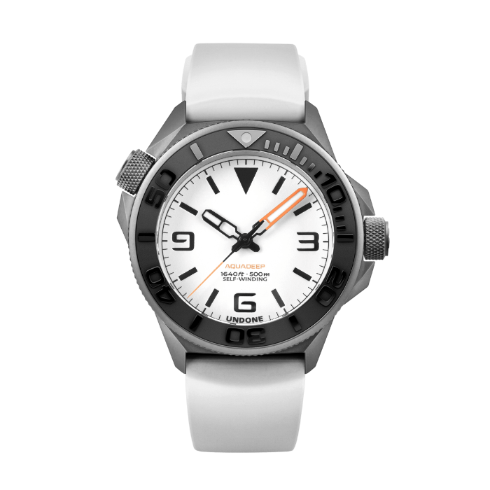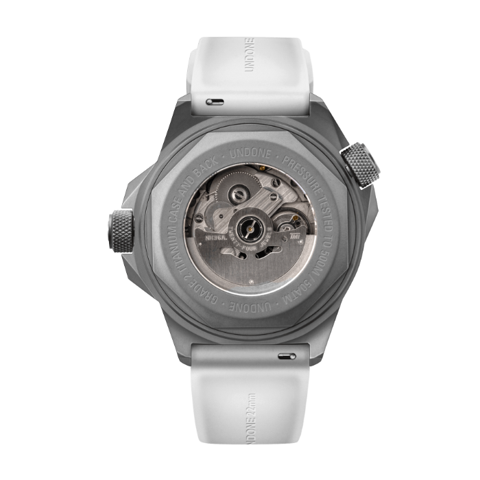 Designed for those who love bold, futuristic watches, the UNDONE AquaLume White Rubber Automatic features a glowing luminescent dial that shines in the dark. Encased in durable titanium and paired with a sleek white rubber strap, this watch is not only stylish and modern but also highly functional with automatic movement and 100M water resistance.