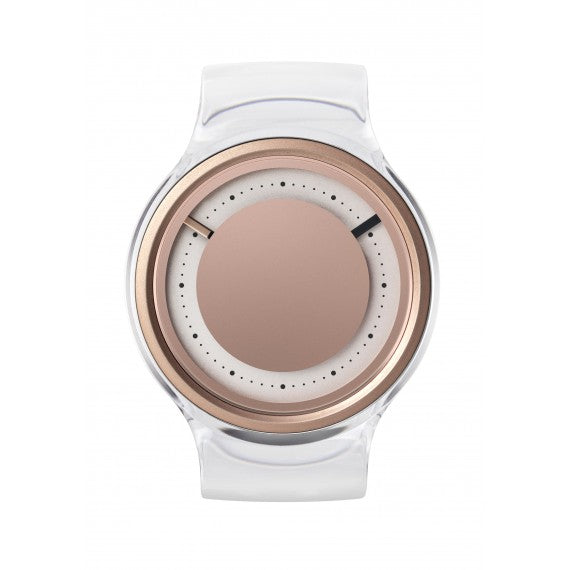 The ZIIIRO EON Rose / Gold is a luxurious and refined timepiece, featuring a rose gold-tone stainless steel case and an innovative rotating disc dial. The gradient discs smoothly transition to indicate time, offering a modern, elegant, and futuristic look. With quartz movement and a unique artistic design, this watch is perfect for those who appreciate sophisticated yet unconventional accessories.