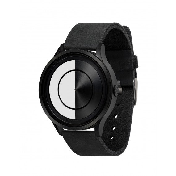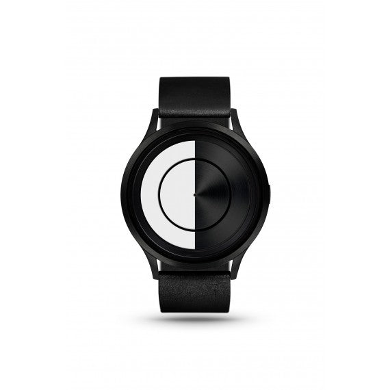 The ZIIIRO LUNAR Black is a sleek and modern wristwatch, featuring a matte black stainless steel case and an innovative half-moon rotating dial. With quartz movement and a contemporary design, this watch is perfect for those who appreciate dark, bold aesthetics combined with futuristic timekeeping.