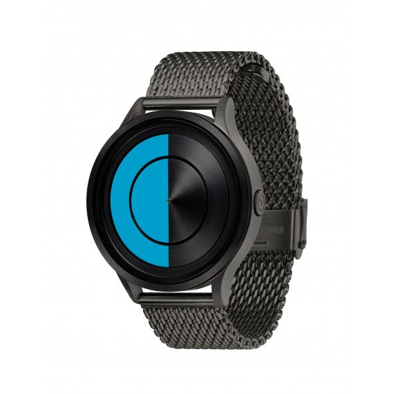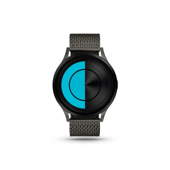 The ZIIIRO LUNAR Ocean is a fresh and modern wristwatch, featuring a stainless steel case with a stunning ocean blue gradient dial. With its innovative rotating half-moon display and quartz movement, this watch is a perfect blend of art and functionality, making it a standout accessory.