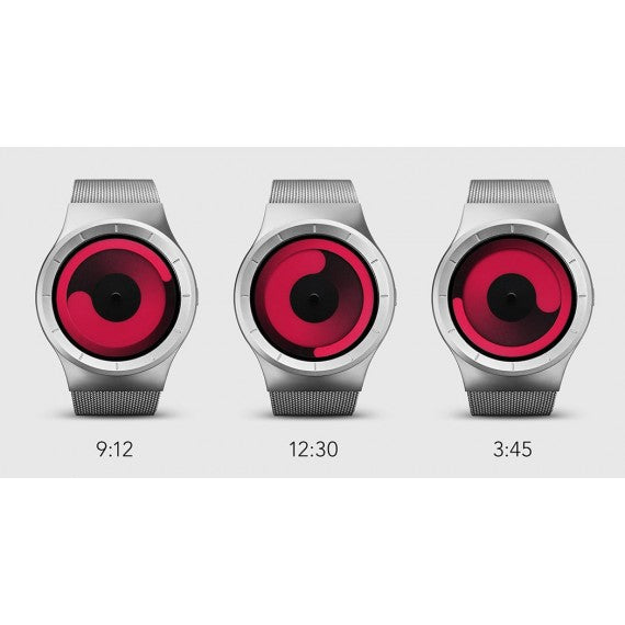 The ZIIIRO MERCURY Chrome / Ocean is a sleek and fluid timepiece, featuring a chrome stainless steel case and a mesmerizing ocean blue gradient dial. With its seamless rotating disc display and quartz movement, this watch offers a futuristic and elegant way to tell time. A perfect choice for those who appreciate modern and artistic watch designs.