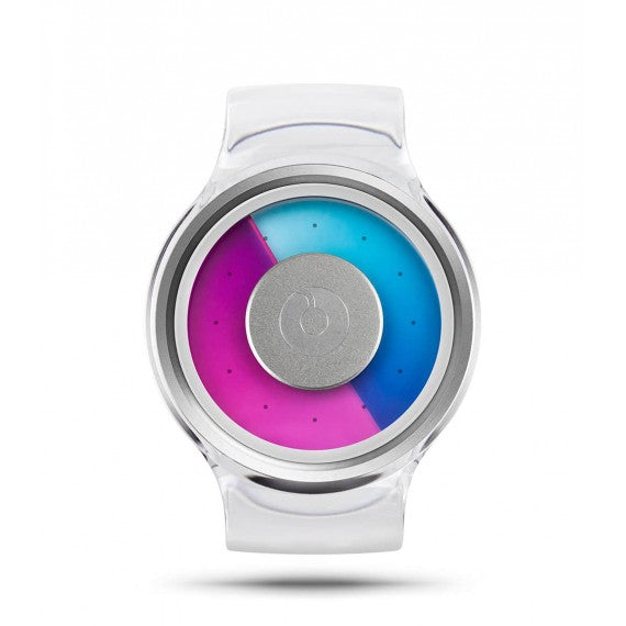 The ZIIIRO PROTON Transparent / Purple is a futuristic and minimalist timepiece, featuring a transparent case and a mesmerizing purple gradient disk display. Instead of traditional hands, this watch uses two transparent discs to elegantly indicate hours and minutes, creating a floating illusion that makes time appear as an artistic motion. With a lightweight design, quartz movement, and a sleek modern aesthetic, this watch is perfect for those who appreciate cutting-edge style and innovation.
