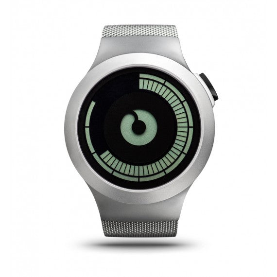The ZIIIRO SATURN Chrome is a stunning and futuristic LED watch, featuring a polished chrome stainless steel case and a bold ring-style digital display. With its unique circular LED time display and quartz movement, this watch is perfect for those who appreciate modern, high-tech, and artistic wristwear.