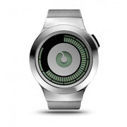 The ZIIIRO SATURN Silver is a futuristic digital timepiece, featuring a sleek silver stainless steel case and an innovative ring-style LED display. Instead of traditional hands, this watch uses two circular LED rings to display hours and minutes, creating a modern and minimalistic aesthetic. With a bold sci-fi-inspired design and quartz movement, this watch is perfect for those who love cutting-edge technology and sleek metallic finishes.