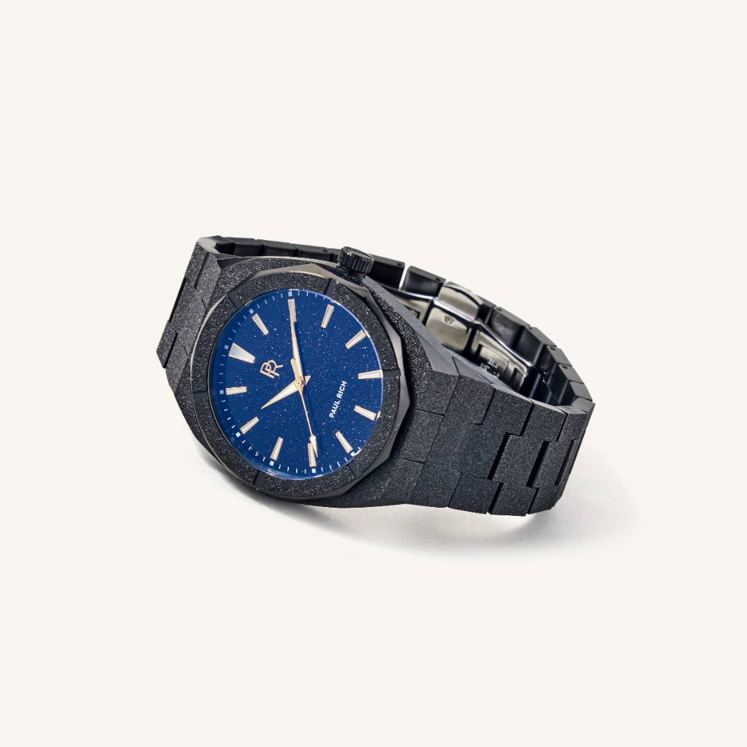 The Paul Rich Watch Frosted Star Dust - Black features a black sunray dial wrapped in stainless steel with a frosted black finish that shines like diamond dust. This men's watch is timeless—bold & unforgettable.
