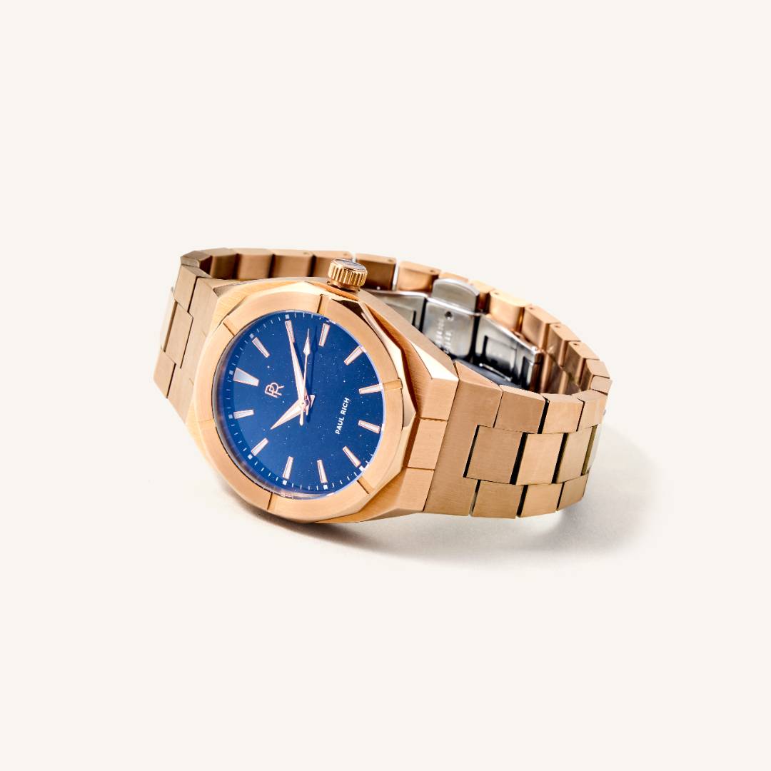 Introducing the Paul Rich Watch Star Dust - Rose Gold 42mm, a stunning fusion of elegance and durability. This timepiece features a striking blue aventurine dial, accentuated by a 316L stainless steel case and strap, making it perfect for both casual and formal occasions.